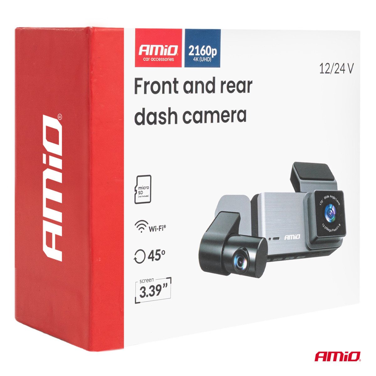 Vismodernākais modelis AMiO klāstā — Dash Camera 4K + 1K + 2K WLAN — ir visaptverošs risinājums visaptverošai transportlīdzekļu uzraudzībai: priekšpusē, aizmugurē un salonā. Priekšējā kamera ieraksta attēlus 4K kvalitātē (3840 × 2160), salona kamera — 1K (1920 × 1080), bet aizmugurējā — 2K (2560 × 1440), nodrošinot maksimālu redzeslauku un augstu ieraksta detalizāciju.