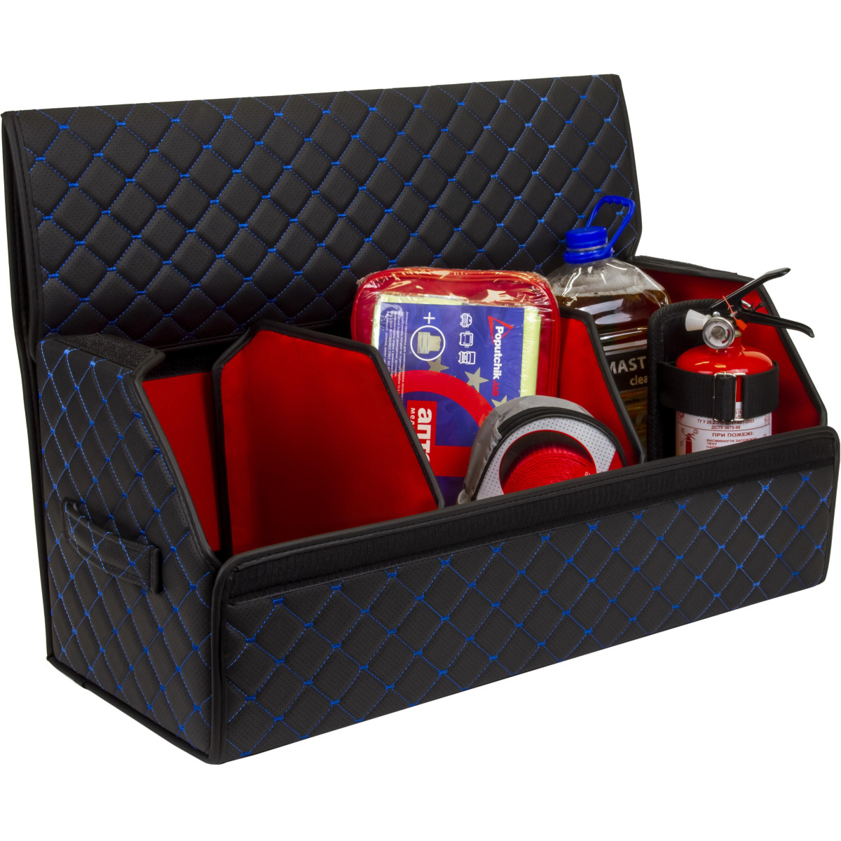 EVAtech Bagāžas nodalījuma organizators ECO L 30x30x65 cm - melna / melnas malas / zils šuvums / sarkans iekšpuse