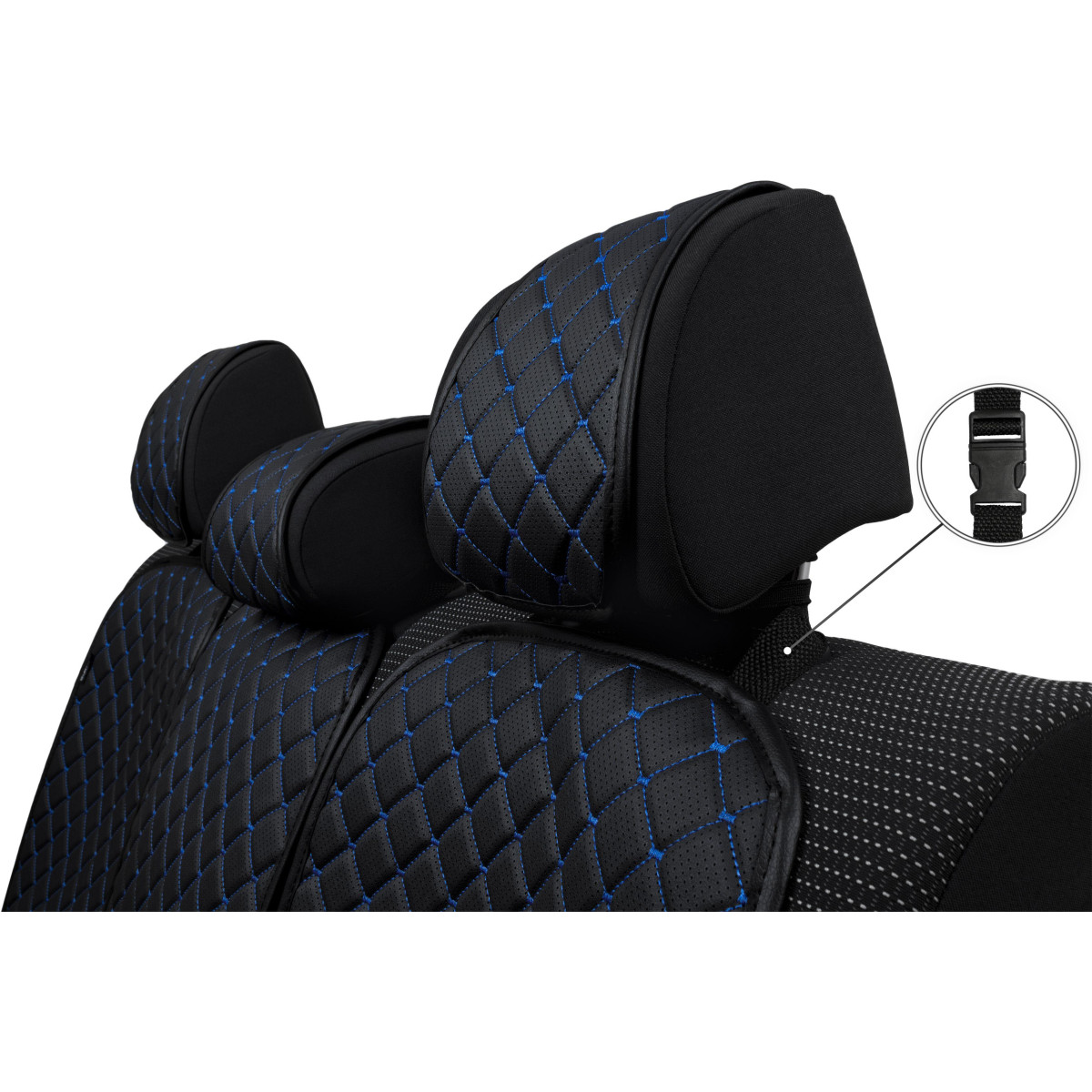 EVAtech ECO Basic sēdekļu pārvalki, 3gab. - melna / melnas malas / zils šuvums