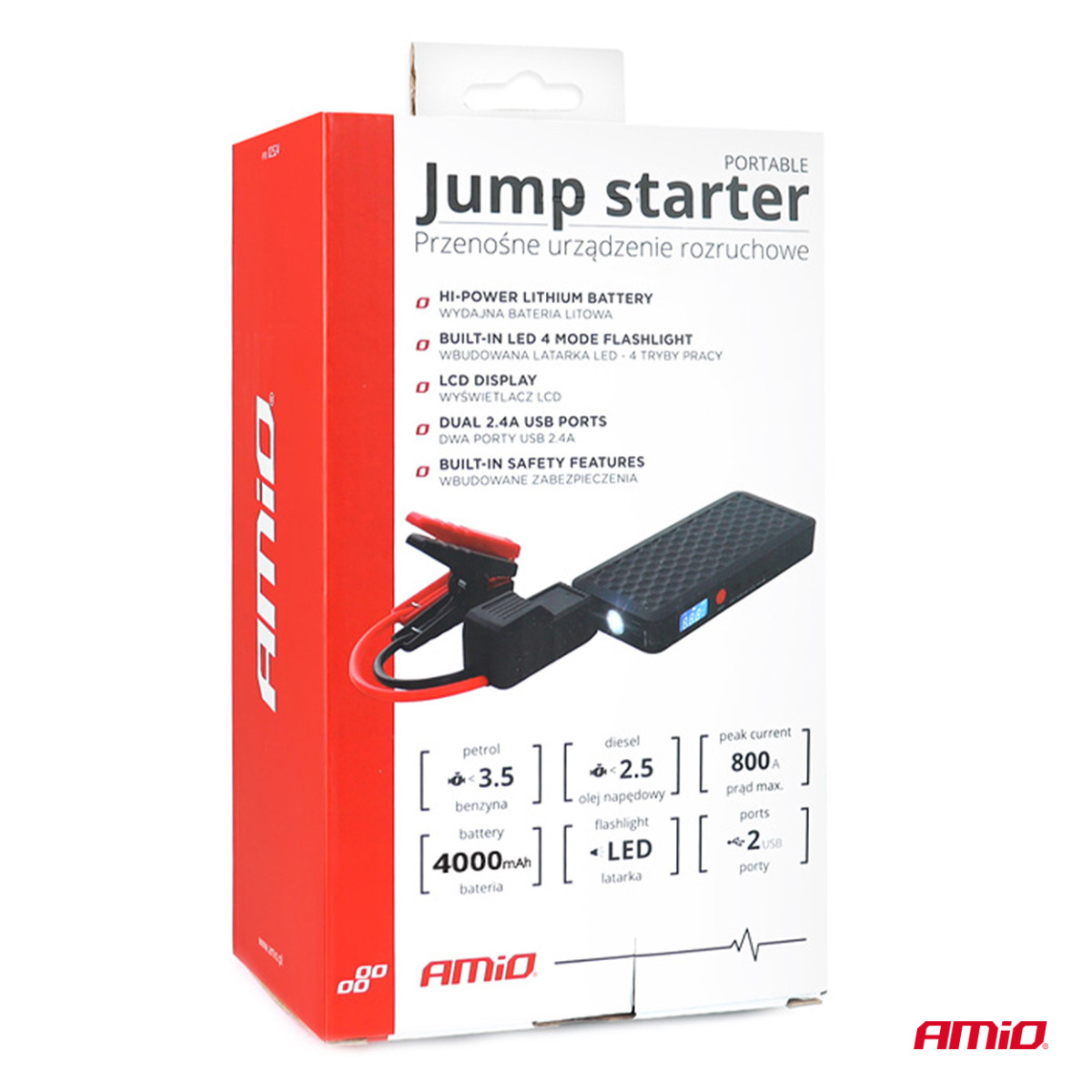 Pārnēsājams starteris/ārējā akumulators 12V 4Ah 800A SJ02 AMIO-02524