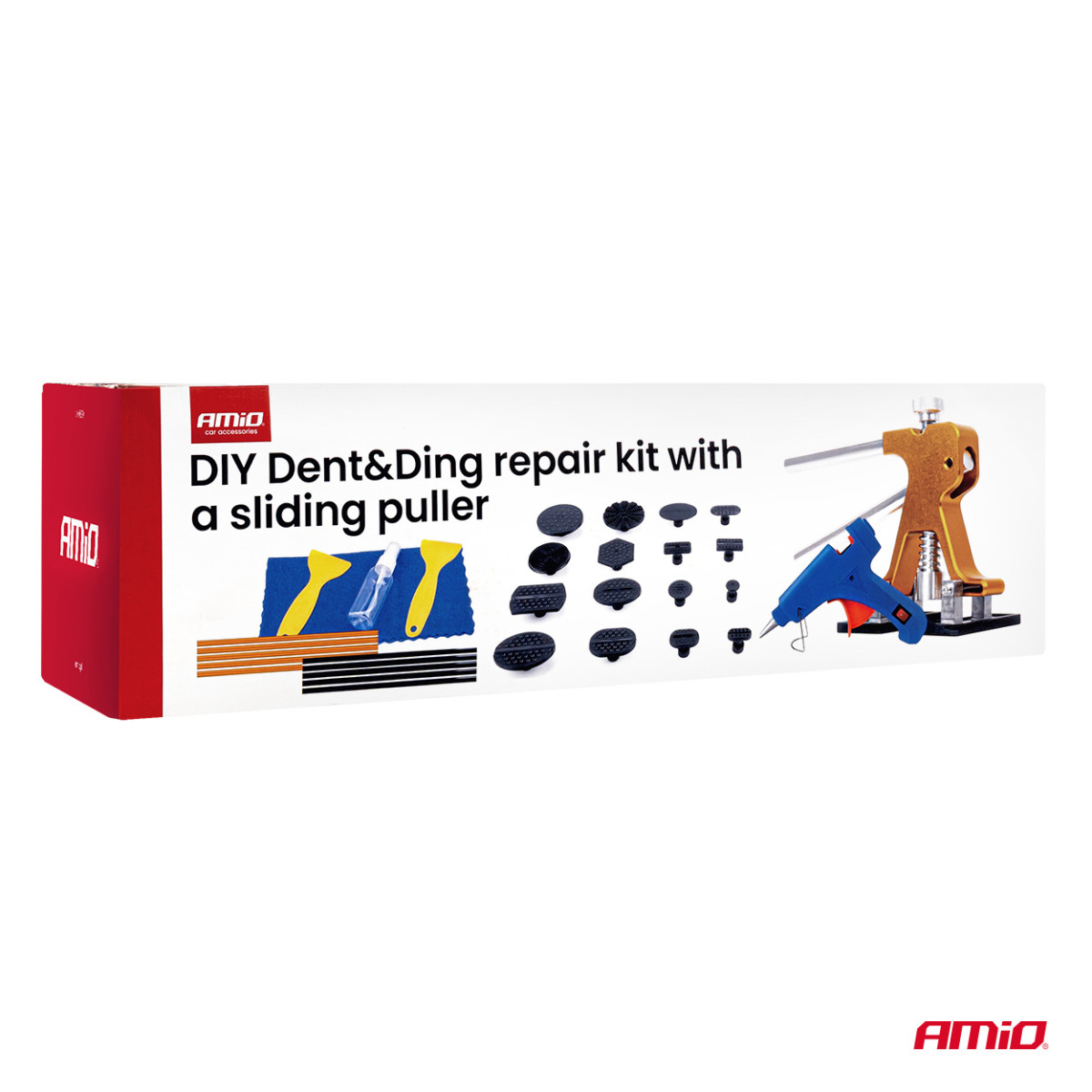 Profesionāls virsbūves iespiedumu remonta komplekts autoservisiem, virsbūvju remonta darbnīcām un "dari pats" lietotājiem. Komplektā iekļautais bīdāmais izvilcējs ļauj precīzi noņemt dažādas formas un izmēra iespiedumus bez špaktelēšanas vai krāsošanas, tādējādi samazinot remonta laiku un izmaksas.