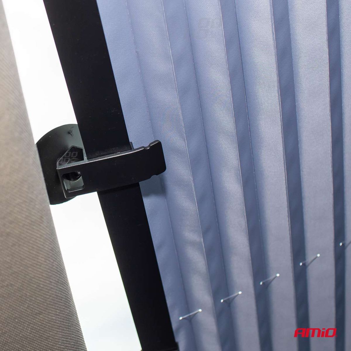 - Pietiek piestiprināt vienu pusi pie stikla, izmantojot komplektā iekļautos piesūcekņus, izstiept to un tādā pašā veidā piestiprināt otrā pusē.