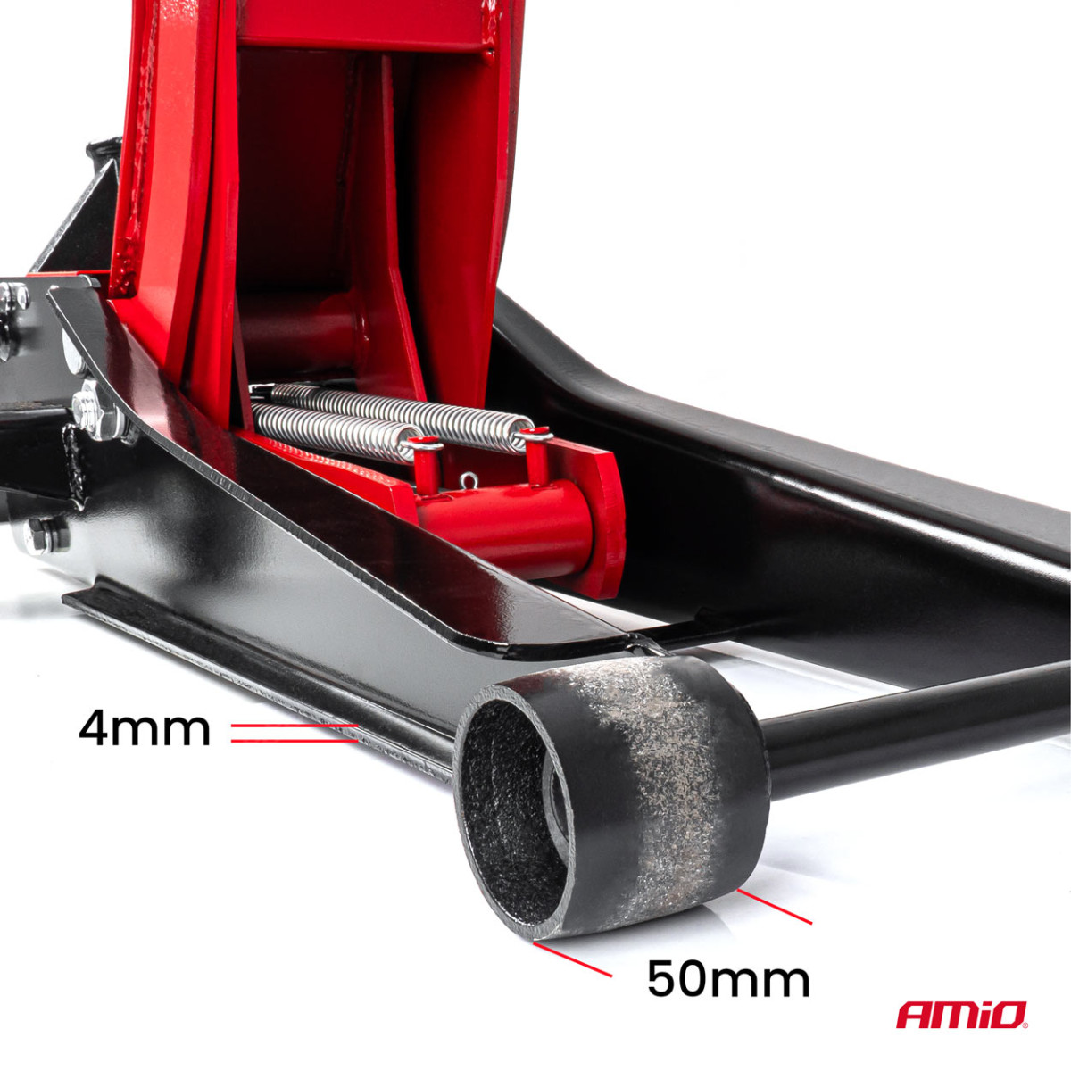 - Precīzs hidrauliskais mehānisms: ļauj vienmērīgi un ātri pacelt transportlīdzekli bez papildu piepūles.